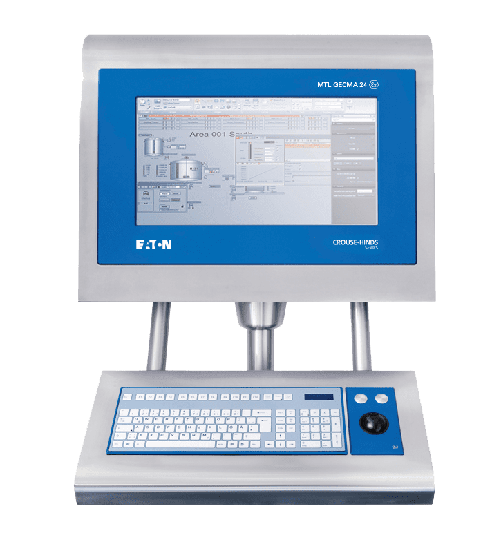 Eaton’s MTL GECMA RT is een toetsenbord-, video- en muis (KVM)-uitbreiding van een personal computer of thin client in een veilige omgeving en kan worden geïnstalleerd in Ex Zone 1/2/21/22 gevaarlijke gebieden.